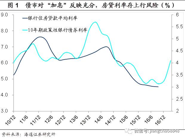 截至16年9月末,银行住房贷款平均利率为4.52%,银行房贷的平均期限应该在10年以上,当时10年期国开债利率只有3.13%,但是目前10年期国开债利率已经接近4.1%,而国开债是完完全全的政府信用,对银行而言不用占用任何风险资本,但是发放房贷要计提50%的资本占用,而银行是高利润率高杠杆行业,其资本金有限,因而资本占用的成本极高,所以按照目前4.1%的国开债利率,从历史数据比较来看合理的房贷利率应该在5.5%左右,比目前的水平高出100bp。