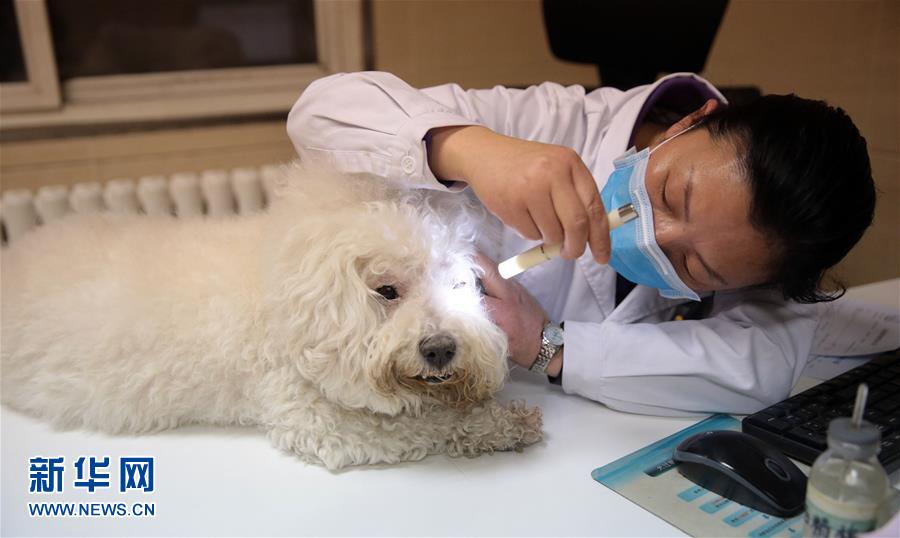 1月31日,在北京观赏动物医院,一只患有心脏病和白内障的小狗准备接受治疗。随着家养宠物的数量增多,城市中的宠物医院也越来越多。2017年春节期间,北京观赏动物医院每天仍有医生护士值班,为在春节假期内不幸患病的宠物治疗疾病。新华社记者才扬摄