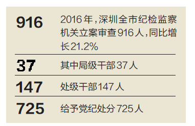 深圳新闻网讯 记者昨从深圳市纪委获悉:2016年,深圳全市各级纪检监察机关聚焦主业、服务大局,党风廉政建设和反腐败斗争取得重要阶段性成效,反腐败斗争压倒性态势已经形成。