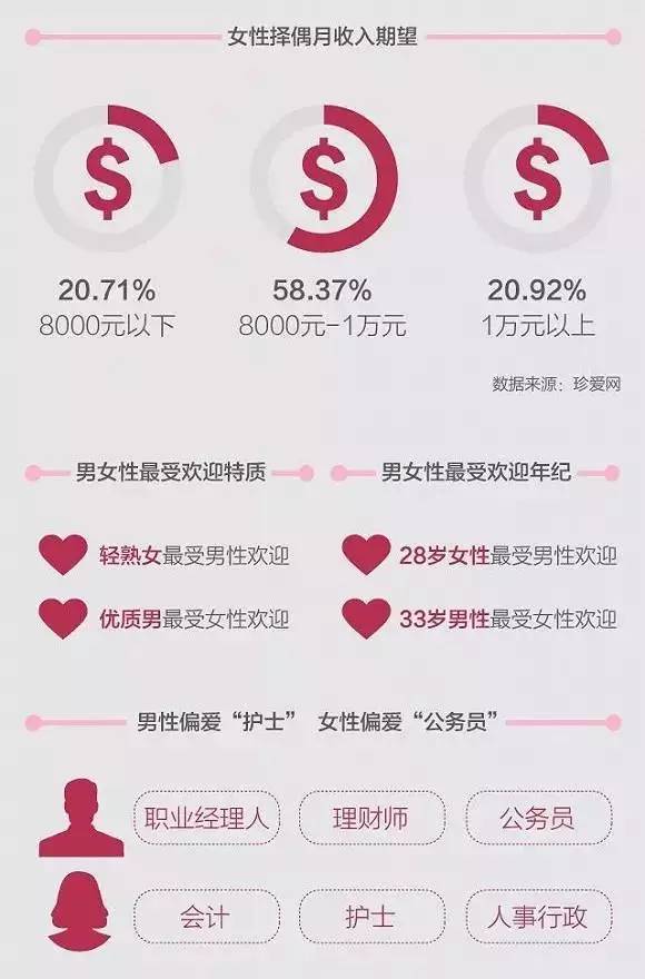 男性择偶喜欢会计、护士、人事行政类女性,尤其是28岁的轻熟女。
