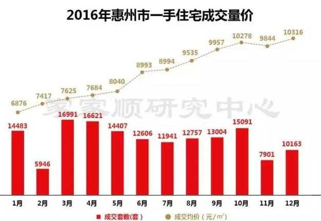 新闻提要 置业临深,成为了近2年深圳购房者的选择之一。据家家顺研究中心监测,纵观2016年全年,惠州一手住宅总成交套数为15911套,总成交面积为1562.54万平方米,成交均价8754元/平方米。