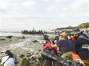 每天都有大批游客前往深圳湾拍摄候鸟。