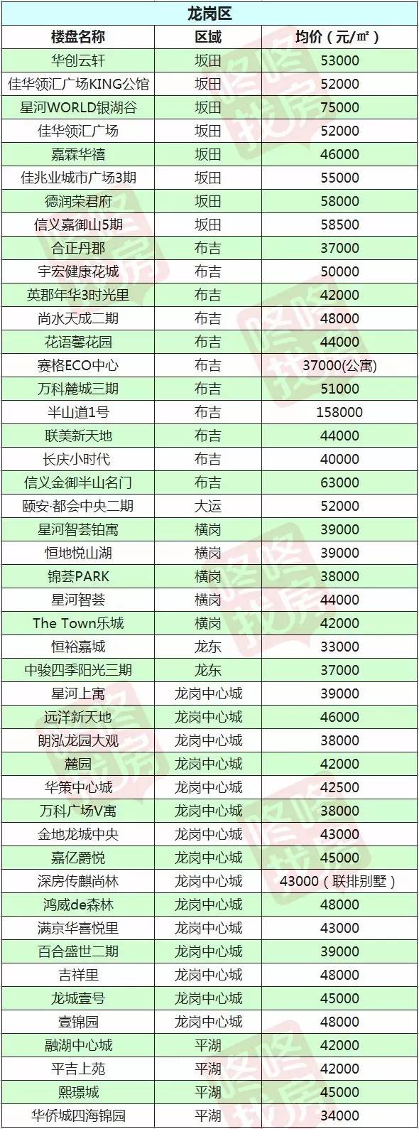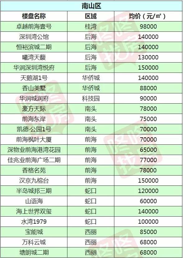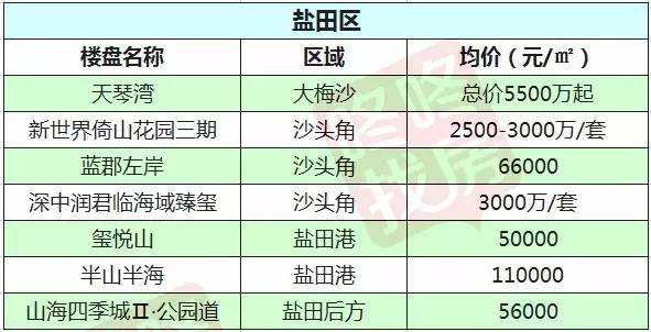 2月最新深圳10区在售新盘价格表出炉