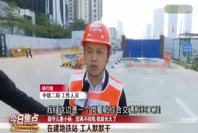 新闻提要 留守儿童的父母为了生计离开家乡出门打拼,其中有相当一部分务工者选择了深圳,中铁二局的杨先生就是其中的一位,来自重庆的他和孩子聚少离多,小杨有一天在电话里对爸爸说,“您再不陪我,我就长大了”这句话让杨先生潸然泪下,杨先生在深圳从事什么工作,常年不能回家的他内心又有哪些只有自己才知道的心酸呢?