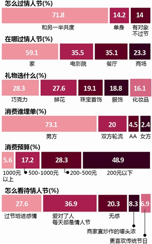 调查表明,逾三成选择外出吃大餐,男性送礼物花费平均1161元