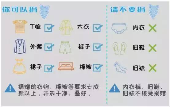 俗话说:“旧的不去,新的不来”。可是对于衣服来说,往往是旧的还未去,新的一大堆,眼看着衣柜就要装不下了,旧的衣服应该怎么处理呢?扔掉太可惜,不如送给有需要的人吧!不仅能给你的衣橱大瘦身,还能献出你的一份爱心!