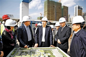 昨日上午,区委书记余新国(中)等领导到红山6979项目调研。龙华新闻记者 蔡维泽 通讯员 阙恺昱 摄