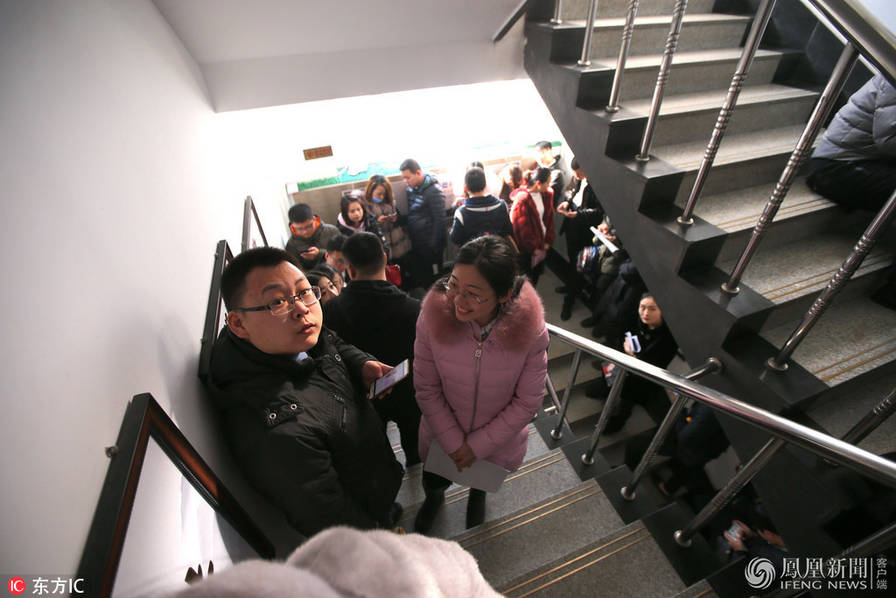 2017年2月14日,长春市南关区婚姻登记处,数百名前来登记结婚的情侣挤满了一楼到三楼的楼梯,场面壮观。