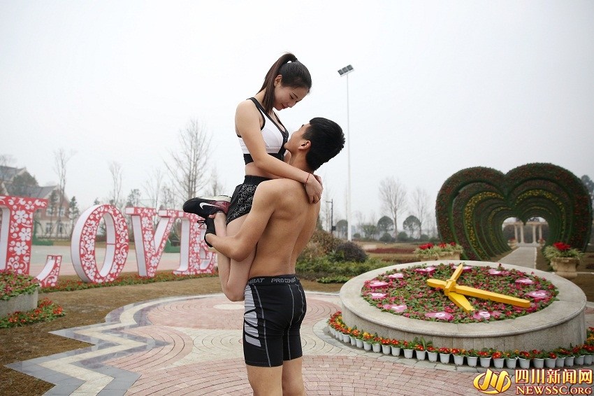 据悉,他们是健身队的成员,每天都保持着健身的习惯。而在情人节,他们用这种方式来秀恩爱。