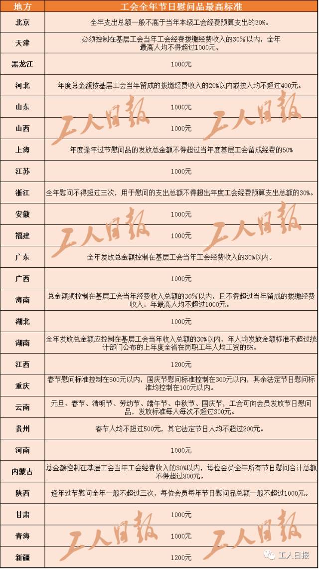 《通知》规定,全省各级基层工会组织可在国家规定的法定节假日向会员发放节日慰问品,每位会员全年所有节日慰问品合计总额不得超过1000元。
