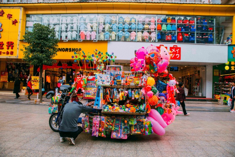 △沿路可见一些贩卖玩具的摊位