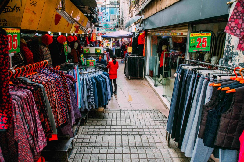 △满足各种需求,也会看到卖服装的地摊