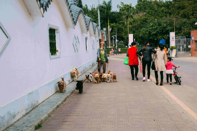 从西乡的侧门出来,远远看到一个遛狗的人,一开始以为是一个职业遛狗的保姆,觉得十分有趣,所以远远地给他拍了个照,走近的时候他也十分友好地互相打招呼。