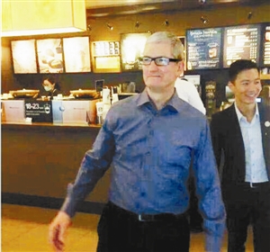 同一天,苹果公司大佬库克出现在新闻路星巴克。(网络图片)
