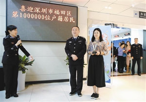 昨天上午,福田公安分局行政服务中心迎来第一百万位福田区户籍居民,成为全市首个户籍人口破百万的行政区。据了解,目前深圳市户籍人口约410万,福田区总面积约79平方公里,仅占全市的4%,户籍人口占全市的近1/4。