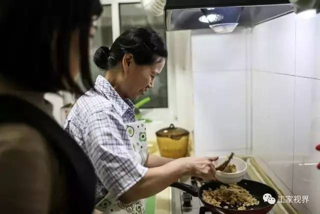 ▲婆婆给姜京子盛饭。只要在家,婆婆包揽了所有家务。姜京子特别感激婆婆。
