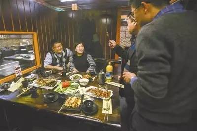 ▲2月15日晚上,李金泽夫妇和朋友外出吃饭,大家对她每天坚持跨省上班既惊讶又钦佩。