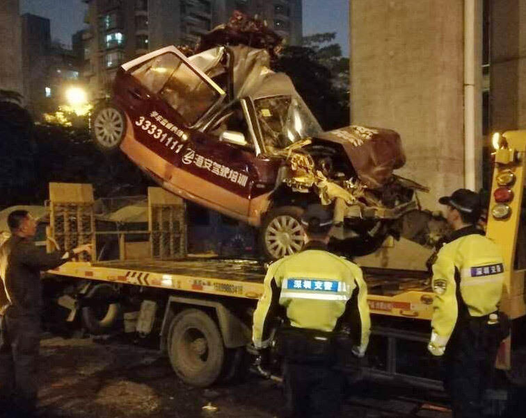 深圳六车相撞 教练车被货车骑成一团(图片)