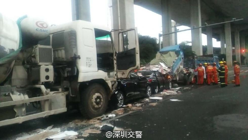 昨晚(2月19日)20点07分,深圳交警通报了一起交通事故:18时30分,同乐路刚过打石一路路口南往北方向,发生六车事故,导致该路段车辆无法通行。从交警发布的图片可以看到,一辆教练车“伤情严重”,几乎扭曲成了一团。