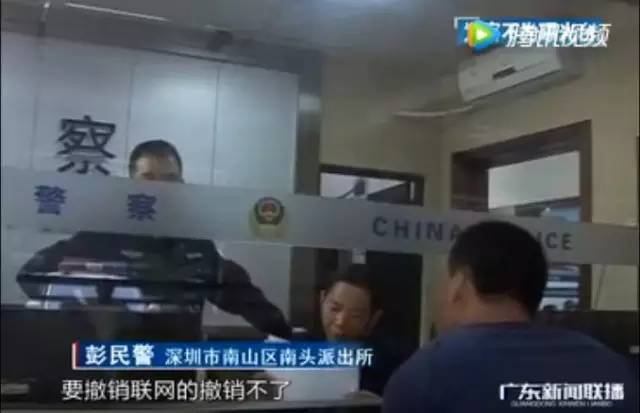 深圳市南山区南头派出所的彭民警回应: 要撤销联网的撤销不了,派出所层面绝对撤销不了我们只能上报上面修改,但是报上去还是没有跟他解决,我也很纳闷这个问题。