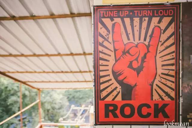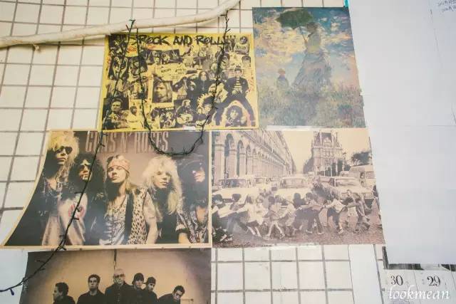 楼梯的墙壁贴满了摇滚音乐海报,想必店长也是一位摇滚控。
