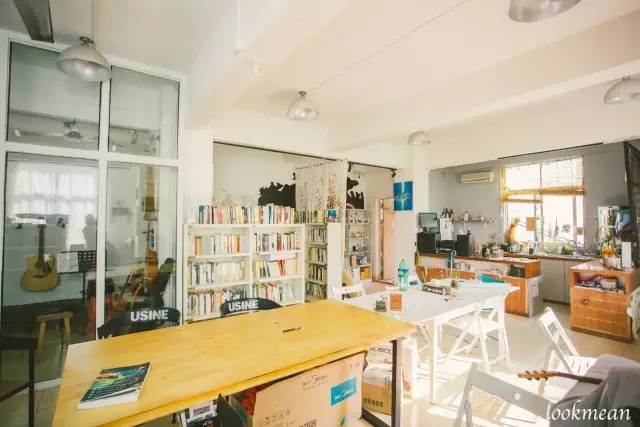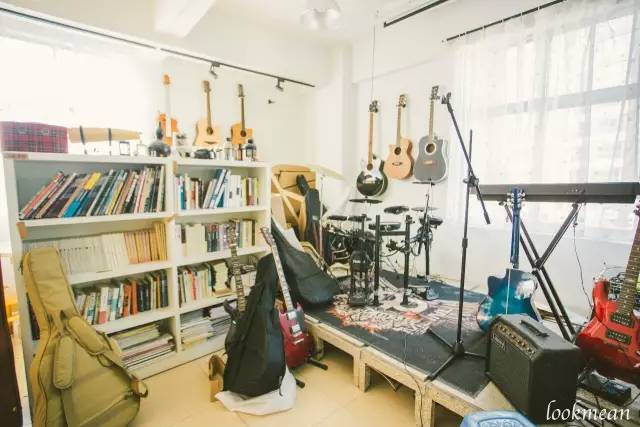 店内分为两部分,一部分是自由阅读区,一部分是吉他学习区。