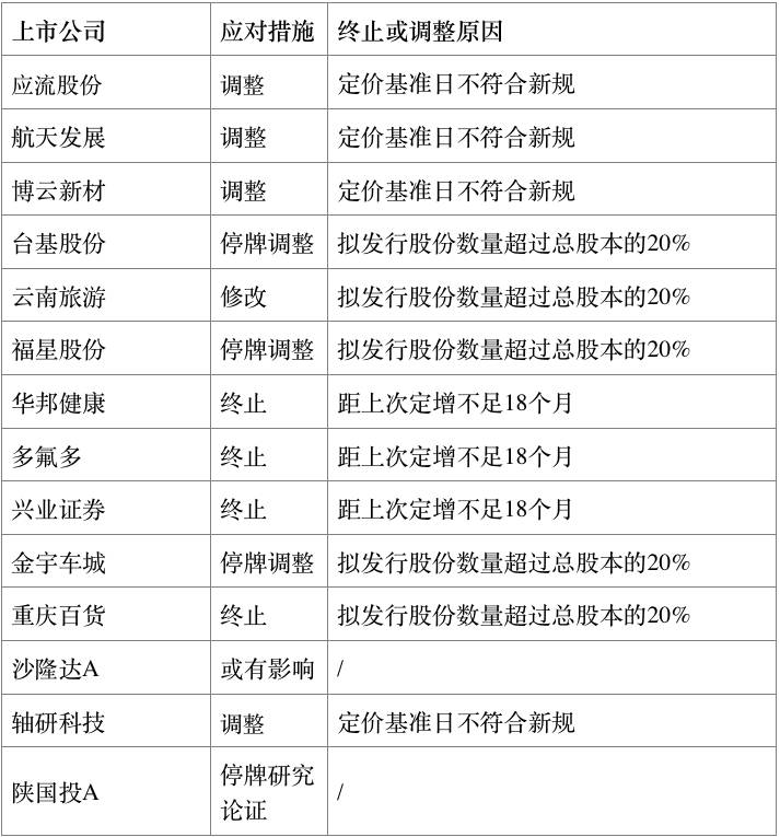 再融资新政的出台使得已经发布再融资预案、但尚未被证监会受理的数百家上市公司受到影响,在兴业证券、应流股份再融资方案相继撤销或者调整之后,越来越多的上市公司也开始回应是否受到相关影响。