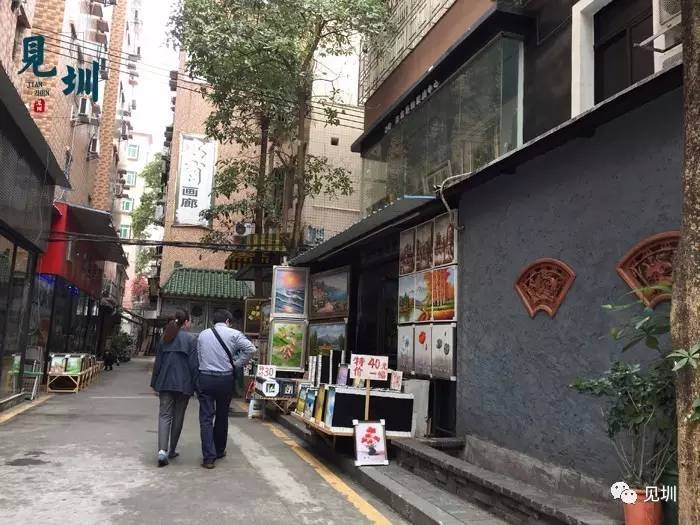 一对正在穿街走巷寻画的客人。