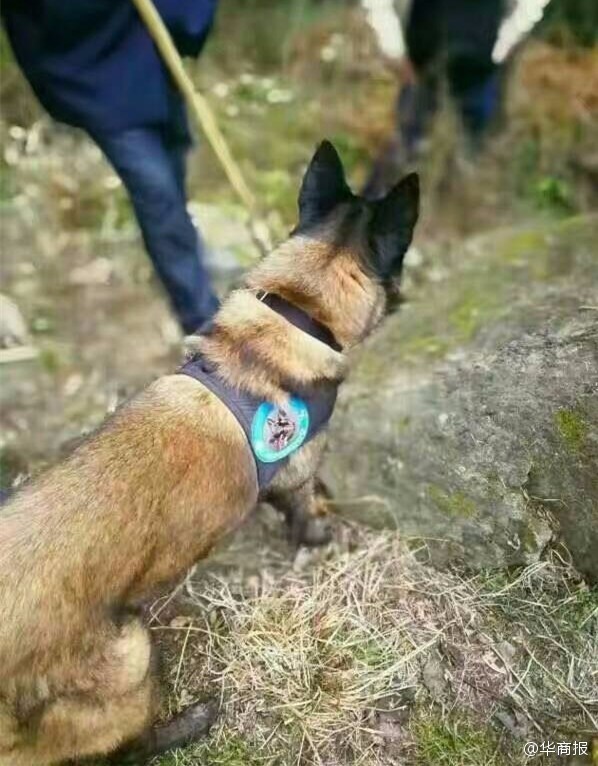 图为参与搜救的警犬。
