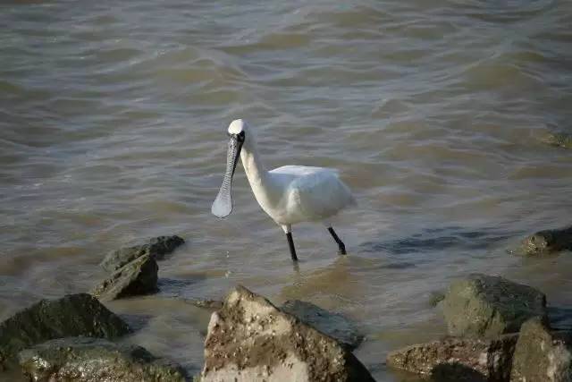 当黑脸琵鹭优雅地展翅飞来,用宽宽的喙扫荡着浅滩;