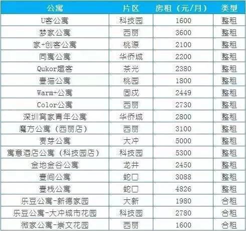 更多南山长租公寓(数据来自“合屋Hewoo”)