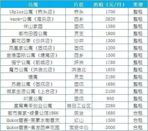 更多宝安长租公寓(数据来自“合屋Hewoo”)
