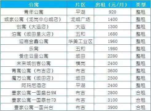 更多龙岗长租公寓(数据来自“合屋Hewoo”)