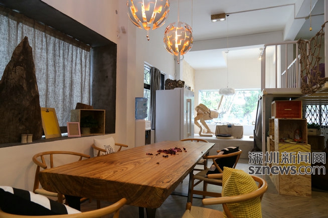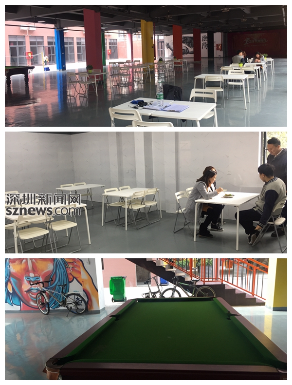 负责接待的小伙子介绍,集悦城从2016年8月开始对外出租,这里的80多栋厂房,其中40多栋被改造成公寓,其余的作为写字楼办公用。目前主打的户型有两种,一种是LOFT户型的,带家私家电,2300元;一种是平面户型的,带家私家电,2000元。每一层端头还有面积稍大的户型,不带家私出租3000元。每个户型都配有独立卫生间,但没有厨房。要自己做饭也不是问题,社区里有超市,也可以去附近的菜市场买菜,社区提供有两处集中的开放式公共厨房,住户可在那里做饭,聚餐。