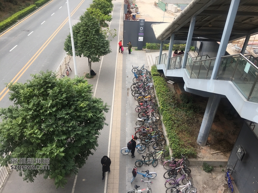 从D出站口看,有不少共享单车在此,记者决定骑行共享单车前往。