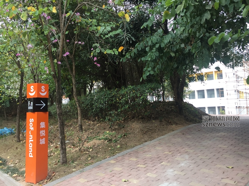 自行车沿留仙大道往西方向骑行约10分钟,路边可见集悦城标识。