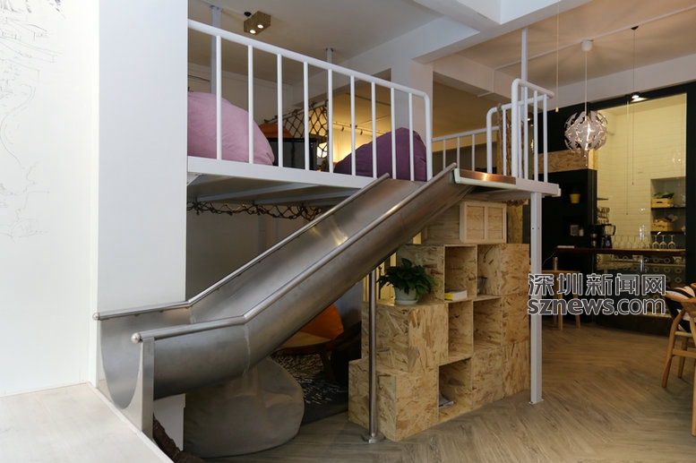 公寓样板间,高架床下的空间可布置成阅读区(图片来自合屋Hewoo)。