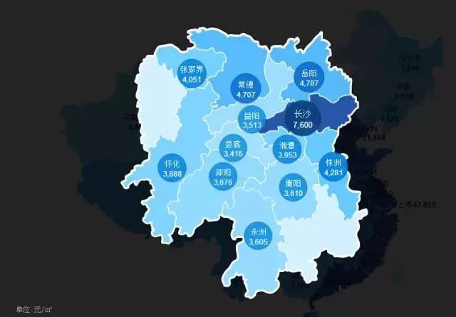 一直看到芒果卫视各种刷屏,心理想着长沙房价应该很贵,结果均价只有7600元/平方米,还是全省第一。其他城市房价在3000-5000元/平方米之间。