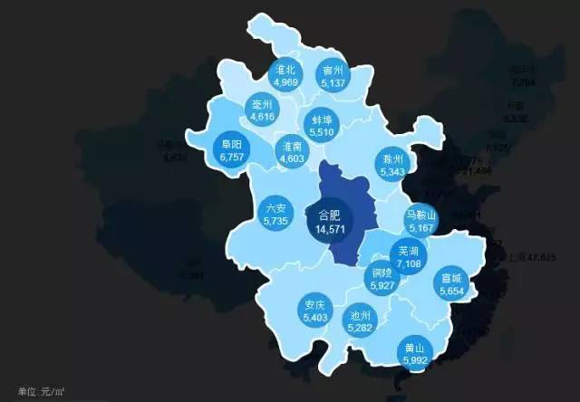 合肥最高,达到14000元/平方米,其他城市在5000元/平方米左右。