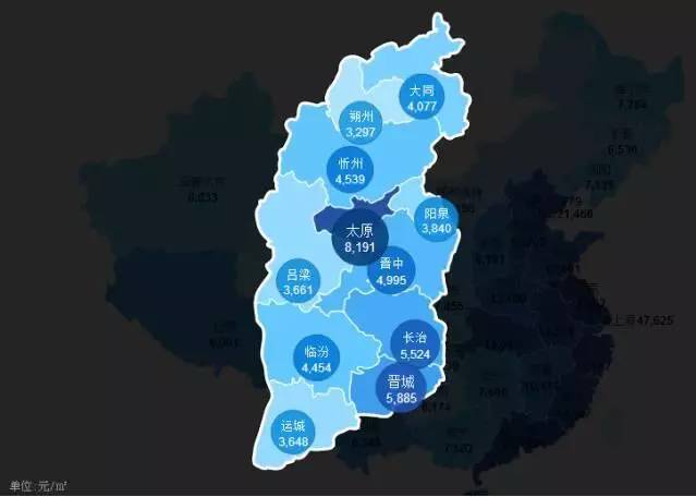 全省整体房价不是很高,太原为8200元/平方米,全省最高。其余地方均价在4000元/平方米左右。
