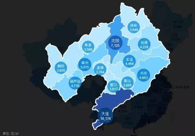 大连房价破万,沈阳7000元/平方米其余城市均价4000元/平方米。