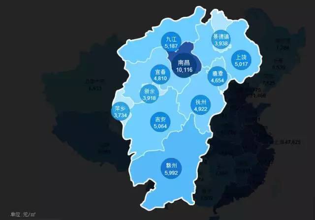 南昌房价最高,已经破万。其他城市房价在3000-6000元/平方米之间。