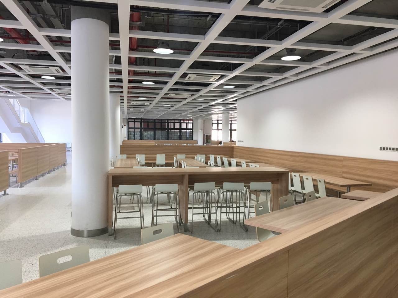 南区宿舍楼下的食堂已经投入使用,餐厅的装潢风格十分像西餐厅。据说非食堂营业时间将开放给同学们做开会讨论使用。