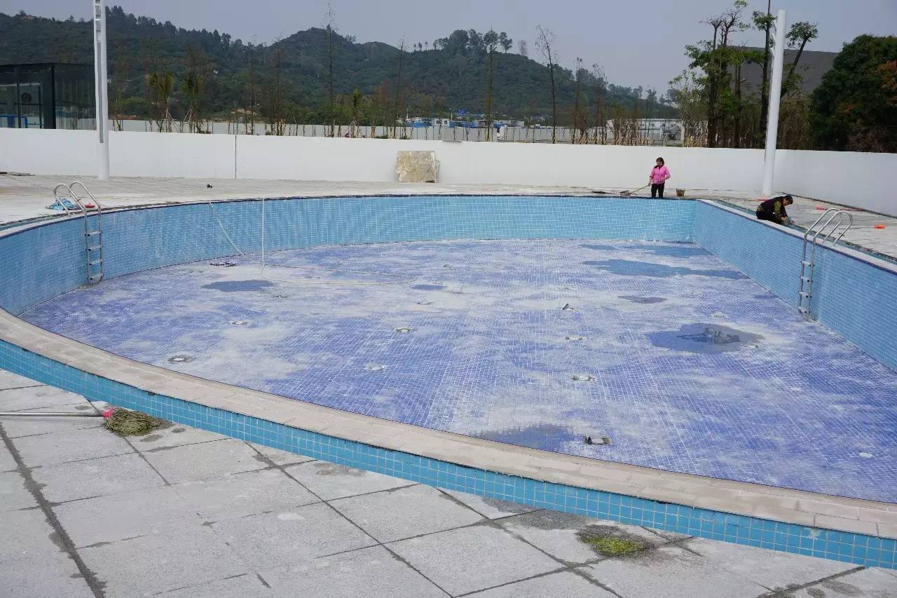 拍摄的时候泳池看样子已经完工,正在进行最后的清理工作。