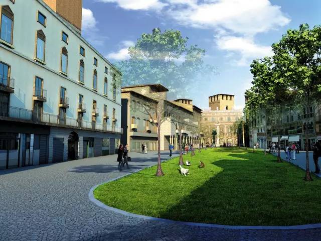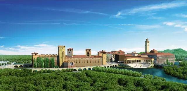 以维罗纳中世纪的古城为原型,将景观水路还原到街区内,结合独树一帜的古塔、壮美的广场、曲径通幽的石街,打造尺度宜人的街巷风情,形成了富于变化的组团。
