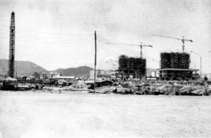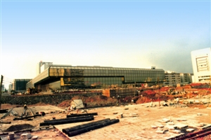 1984年剧院建筑工地及早年的剧院南广场外景。