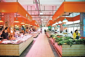 该市场内地面干净整洁,无明显散落和成堆垃圾,排水道沟槽干净,环境卫生情况良好;烧腊档封闭经营,豆制品加盖了纱布;市场充分考虑商铺需求,在不影响车辆出行前提下,划线规范经营;每日检测蔬菜、水产、肉,并及时将检测结果予以公示;电源线入管,未出现乱拉乱接现象;市场内各岗位职责落实到人,并将责任人照片、姓名、职务、电话张贴到岗位监督栏上。