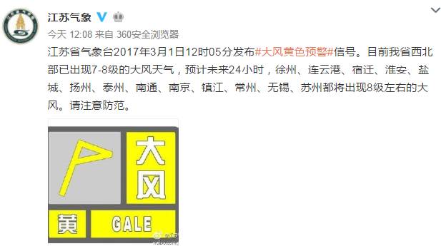 新闻提要 江苏全省多云到晴,偏北风5-6级阵风7-8级,最低温度: 淮北地区-2℃左右,苏南南部地区3℃左右,其它地区0~1℃,最高温度: 全省9~10℃。