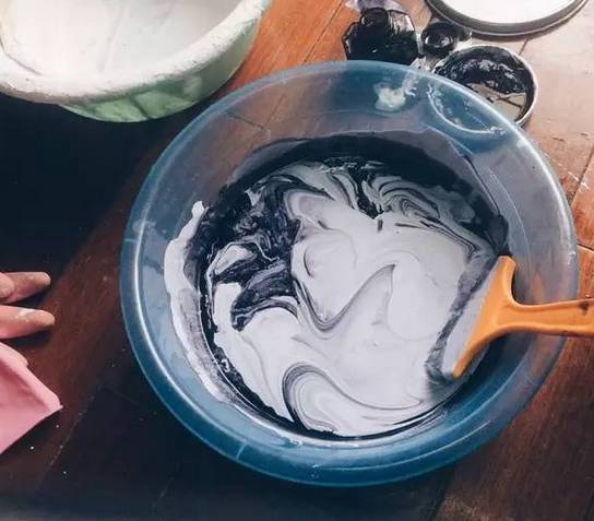▲上第一遍水泥漆,上完后还无法将原来的墙颜色覆盖