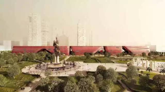 “三馆一城”占地面积约2.6万平方米、建筑面积约9.5万平方米,其他7个地块用地面积约18.7万平方米、建筑面积约131.3万平方米,片区新增总建筑面积约141万平方米,配套约8700个停车位。